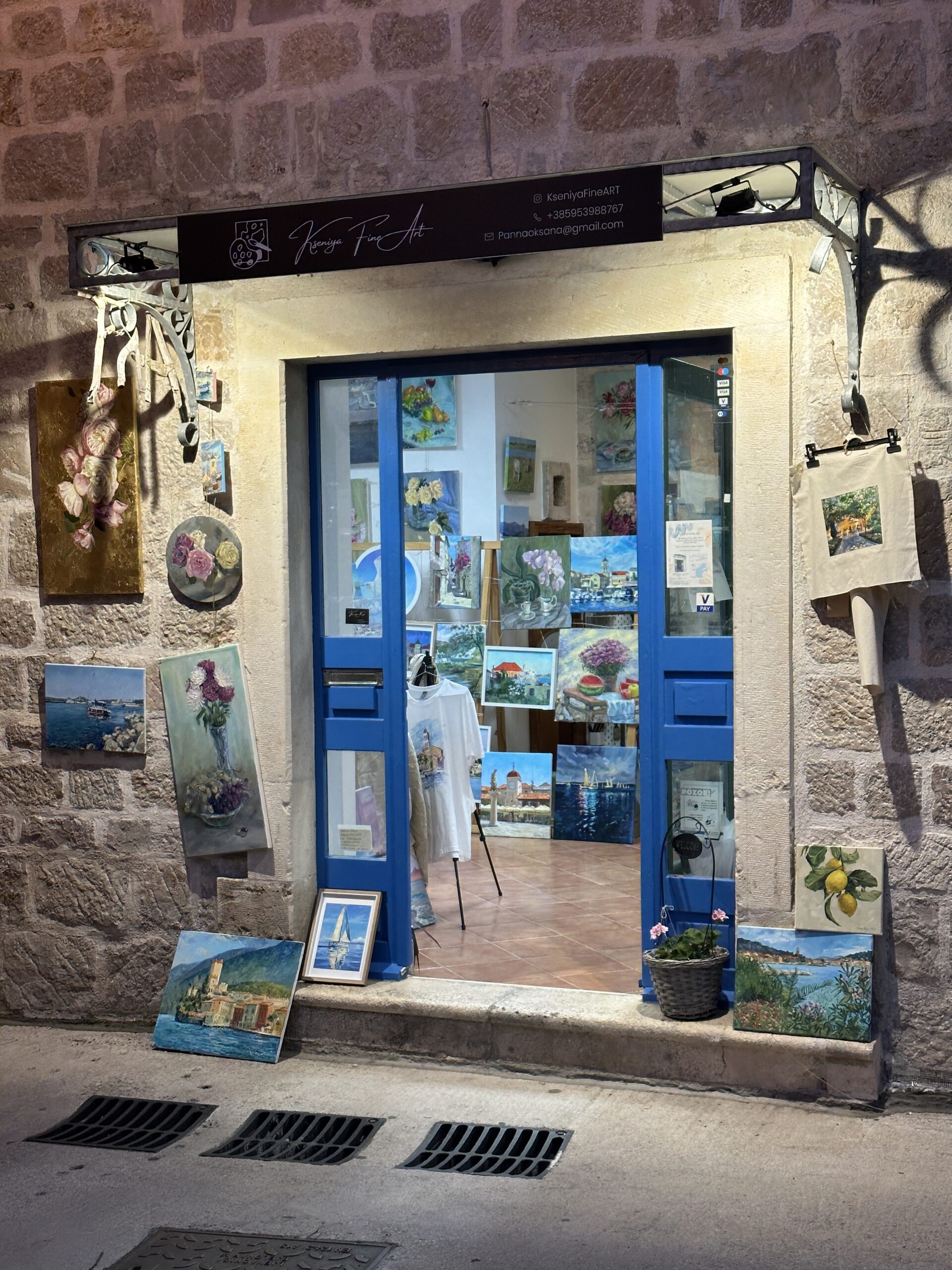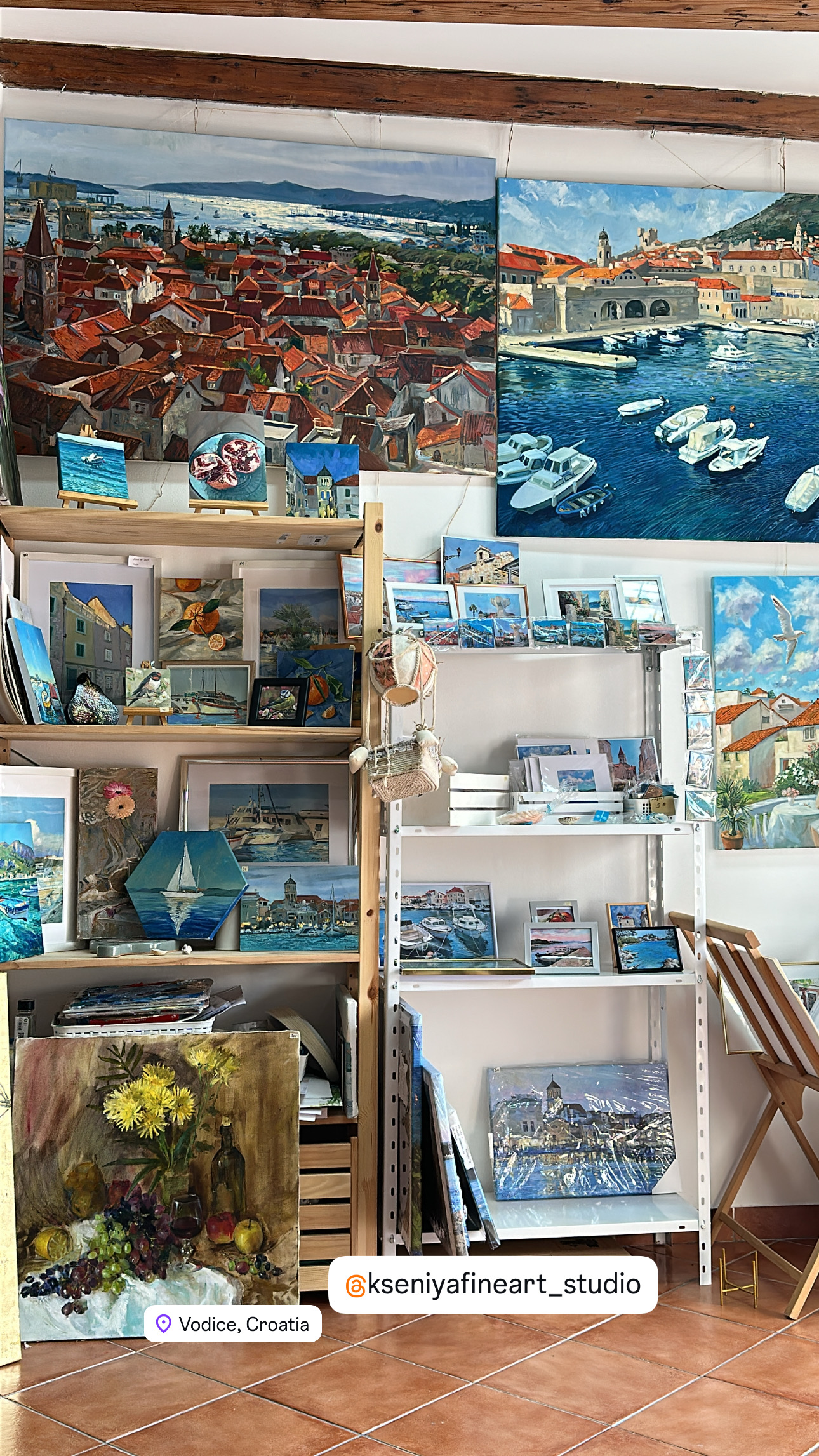 In June 2024, I opened my own painting studio in Vodice. It is my personal space that serves as both my workshop and studio, where I teach drawing to children and adults. This studio also operates as a small gallery where you can come and see what paintings I have available and purchase something. I also invite you to visit me during my working hours to get to know my art, my paintings, and me.